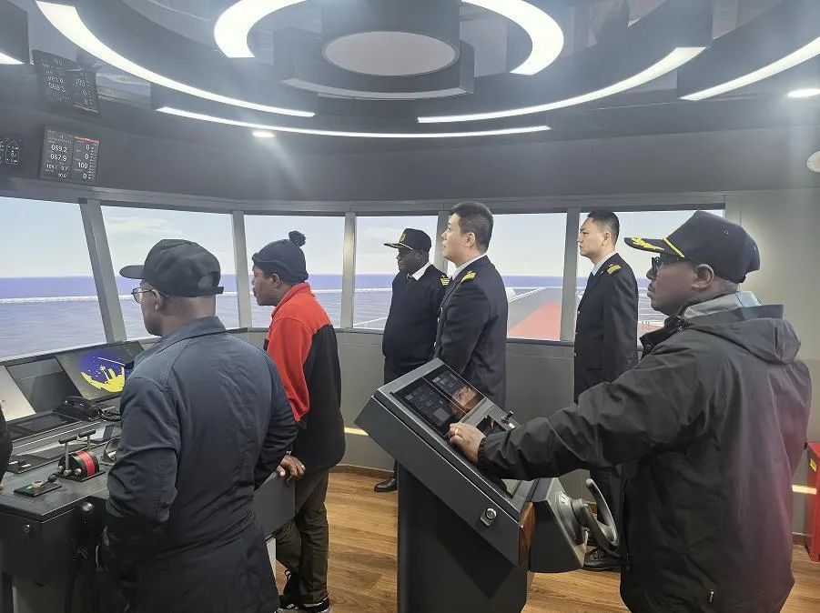 加纳是西非第二大经济体,位于几内亚湾中心,拥有地理优势、资源优势和战略优势。在中国“一带一路”倡议的带动下,加纳共和国的矿石出口量大幅增加,带来了巨大的经济效益。为满足主要出口港特玛港和塔科拉迪港发展需求,掌握更大尺度和吃水船舶尤其是30万吨级散货船靠离泊操纵技术,加纳选派部分引航员和拖轮船长来华“取经”。上海港引航站和日照引航站积极履行国际交流合作义务,组织实施了这次培训。